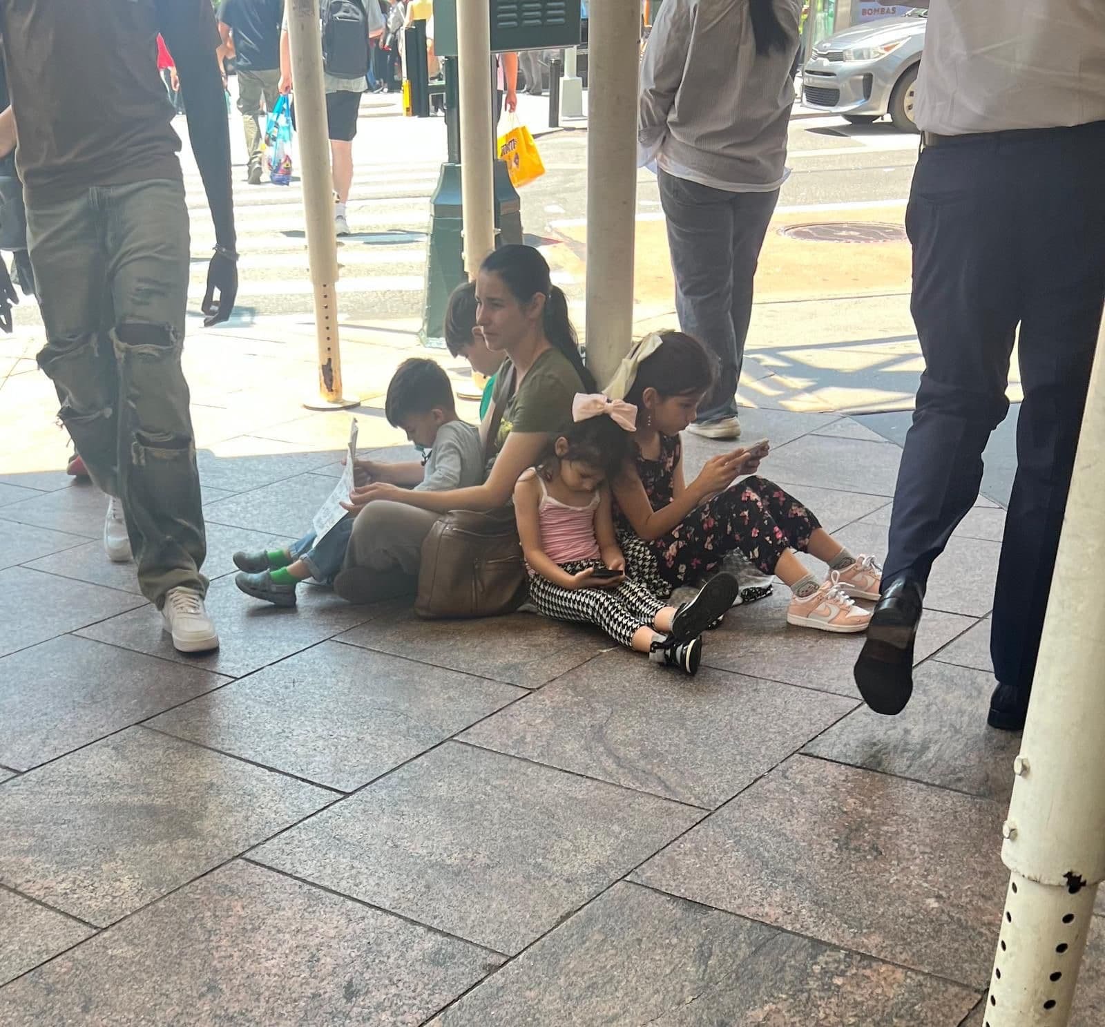 Una imagen capturada recientemente en una transitada calle de Los Ángeles muestra a una madre acompañada de sus cuatro pequeños pidiendo limosna, tras verse obligada a mantenerse así tras la deportación forzosa del padre de familia por agentes de inmigración. El retrato refleja el crudo efecto Trump: familias completas desplazadas, con adultos e infantes en la calle, requiriendo el apoyo de extraños para sobrevivir.