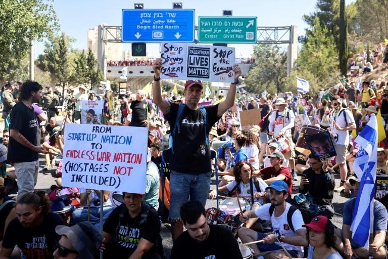 Miles de manifestantes se movilizaron en varias ciudades de Israel para exigir al gobierno un cese al fuego en Gaza que permita la liberación de los rehenes en una jornada marcada por bloqueos de carreteras, llantas incendiadas y enfrentamientos aislados con fuerzas de seguridad, de acuerdo con reportes locales.